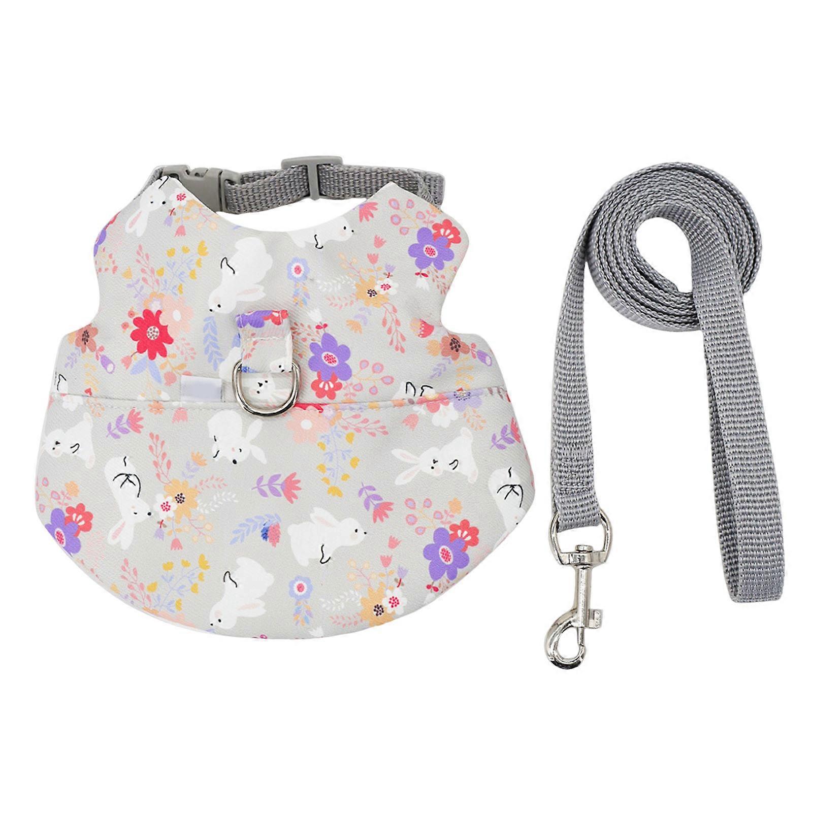 Adjustable Pet Leash Guinea Pig Harness Cartoon Flower Pattern Vest Traction Rope Rabbit Soft Breathable Chest Strap Small Pets Decoration for Rats Ha