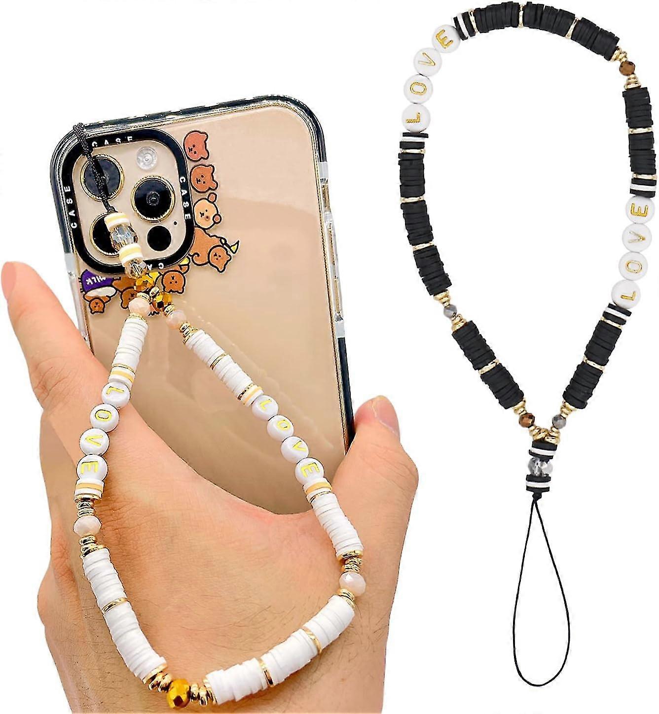 2-piece Beaded Mobile Phone Strap, Mobile Phone Anti-loss Chain, Bohemian Style Beaded Phone Strap, Decorative White Phone Rope (black And White)