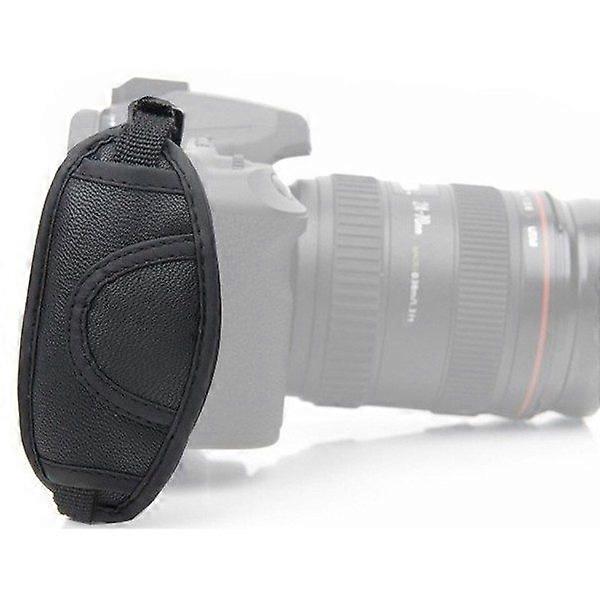 Camera grip for DSLR cameras Ideal DSLR camera accessory. This large padded SLR camera grip features a non-slip surface. The hand grip provides extra security, comfort, and better handling. Made from soft PU leather for maximum comfort. Compatible with Canon, Nikon, Sony, Pentax, Minolta, Panasonic, Olympus, Kodak, and more DSLR SLR cameras. Size: 4.2x3.5x1 inch Package: 1 x Hand Strap