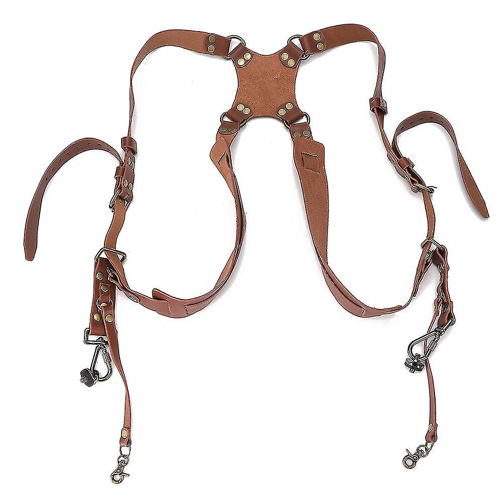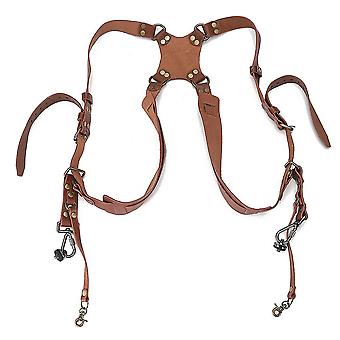 Camera Strap Leather Double Shoulder Harness Strap Photography Accessories For Dslr Camerasbrown