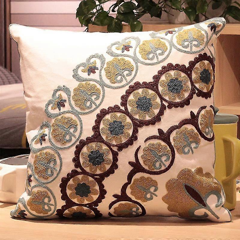 Vintage American Embroidery Cushion Cover Plant Flower Cushion Case Home Decor Cotton Pillow Case Living Room Bedroom Sofa