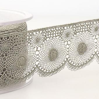 רקמת סטפנואז 40 מ"מ גימור תחרה טול אפור בינוני - למטר