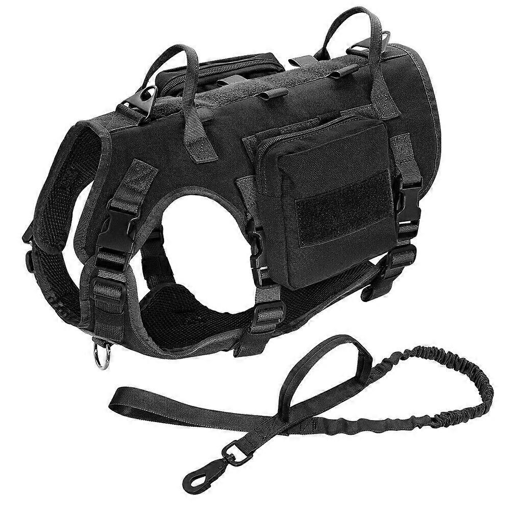 Tactical Dog Harness and Lead with Molle Pouch Bag Strong Nylon Vest with Handle