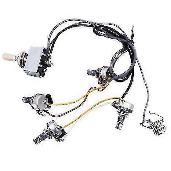 Pattern Name:Guitar Wiring Harness 2 Volumes 2 Tones 4-500k,never usedItem's color might be different from the picture because of the aberration.LP Wiring Harness 2 Volume/2 Tones/3 way switch3 way Chrome box Toggle Switch4-500K Pots (two are A-500k,two are B-500k)with 18mm Shafts/Base Dia:16mm2A683J capacitorsInput This harness is completely prewired.All you need to do is solder your pickups to the switch and ground to the volume pot.Use this harness for LP guitars that require the long shaft pots with 2 Humbuckers/2 Volumes/2 TonesMaterial: copper wirePackage Includes:1x Wiring Harness for LP guitars with 2 Humbuckers/2 Volumes/2 Tones Note: Light and different displays may cause the color of the item in the picture a little different from the real thing. The measurement allowed error is +/- 1-3cm.