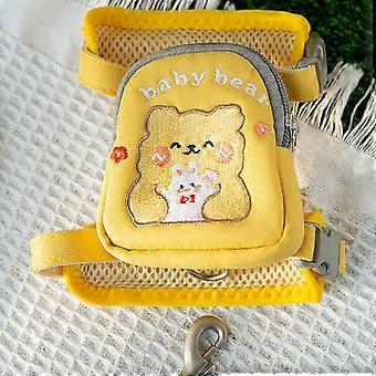 Pet Backpack Harness Adjustable Outdoor Cat Saddle Bags with Lead Leash for Small Pets Cats Dogs Yellow Bear (Double Embroidery Front and Back)