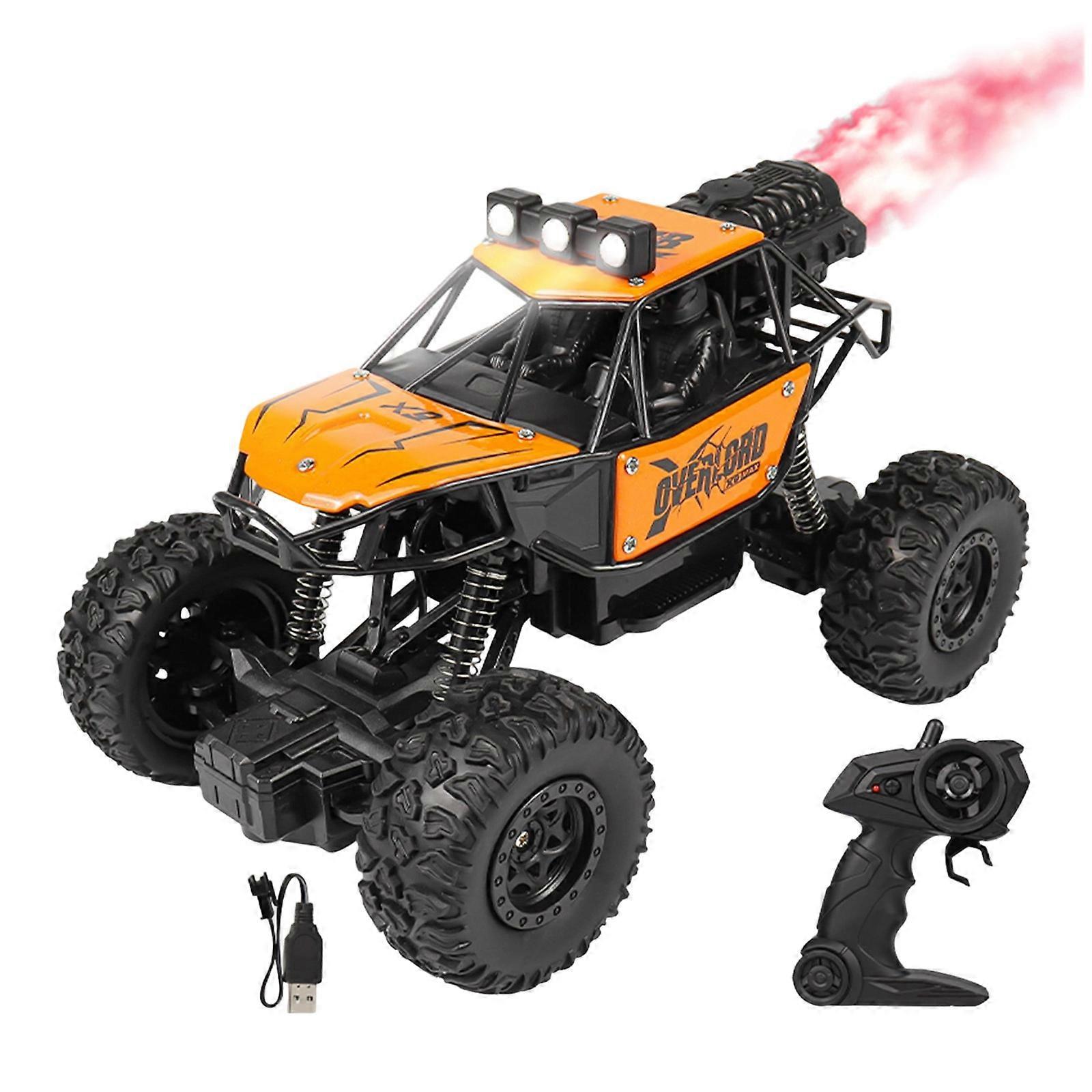 Upgrades 1:18 Scale Alloy Remote Control Off Road Brute Truck with LED Lights & Sprays Effect for Outdoor Adventure Orange