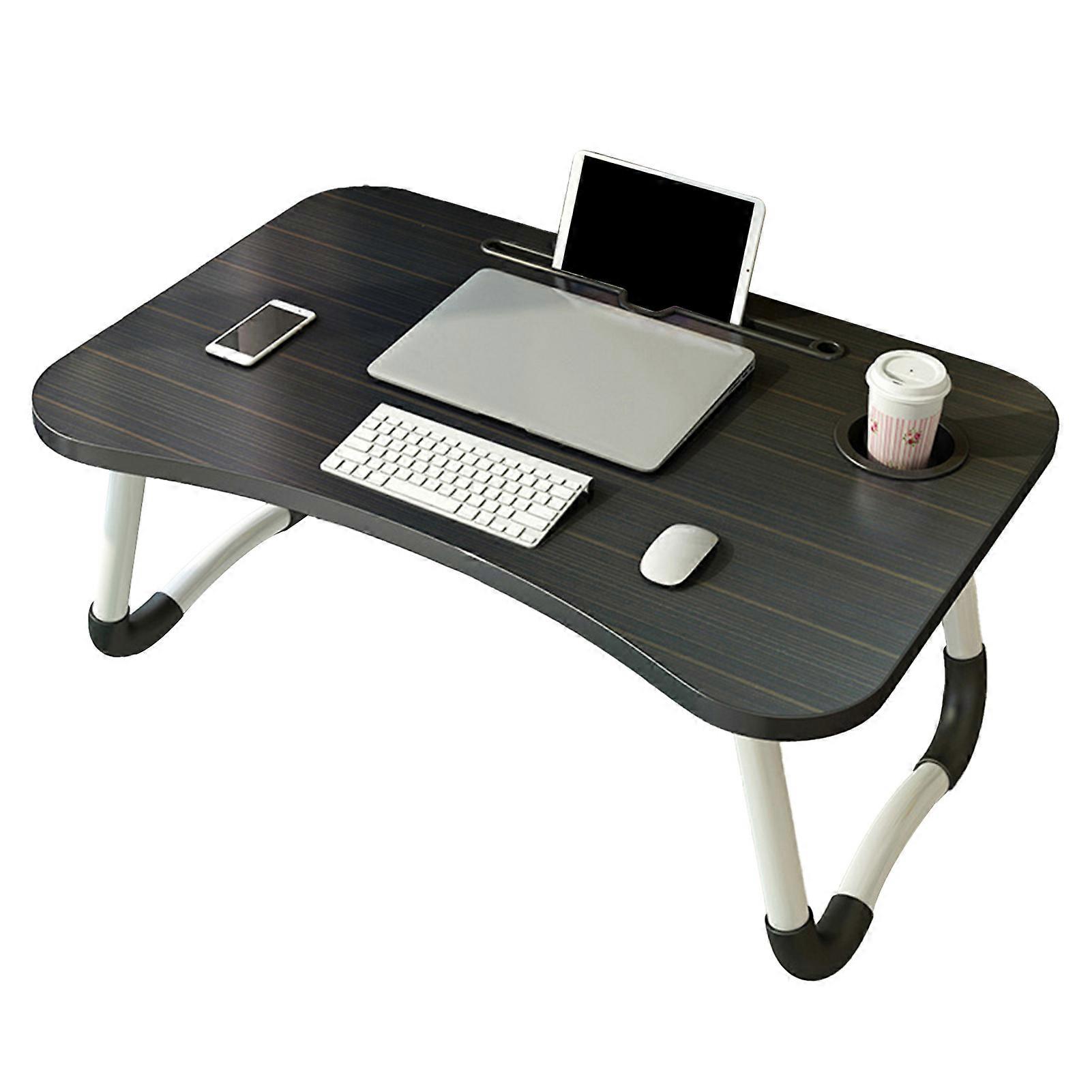 Desk Black Folding Laptop Bed Foldable Lazy Table with Cup Slot for Dormitory Student Children Study