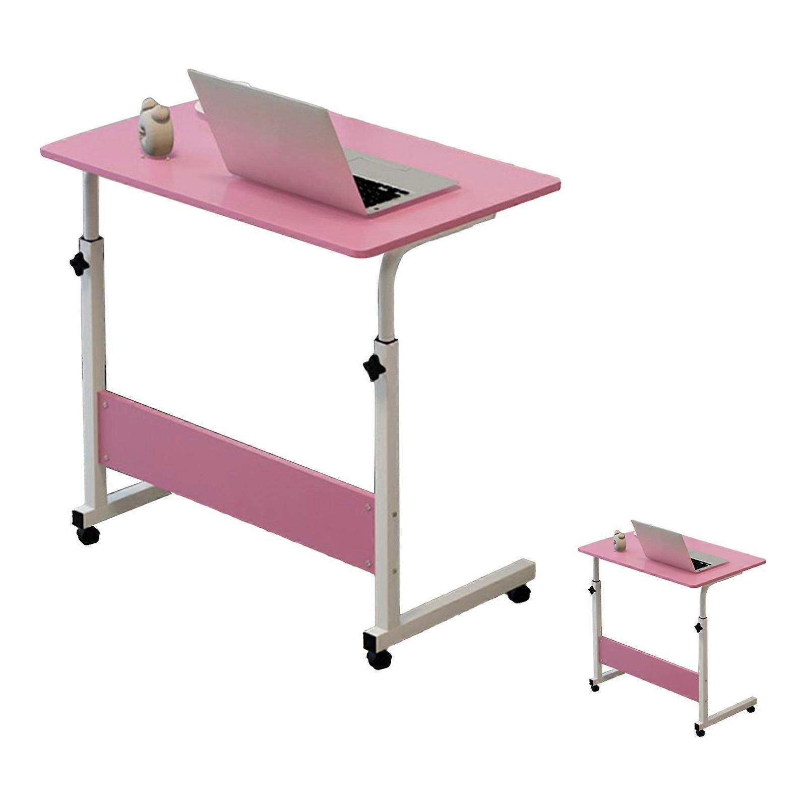 Liftable Bedside Table 60 X 40cm C Shape Metal Frame Mobile Laptop Desk for Home Sofa Pink