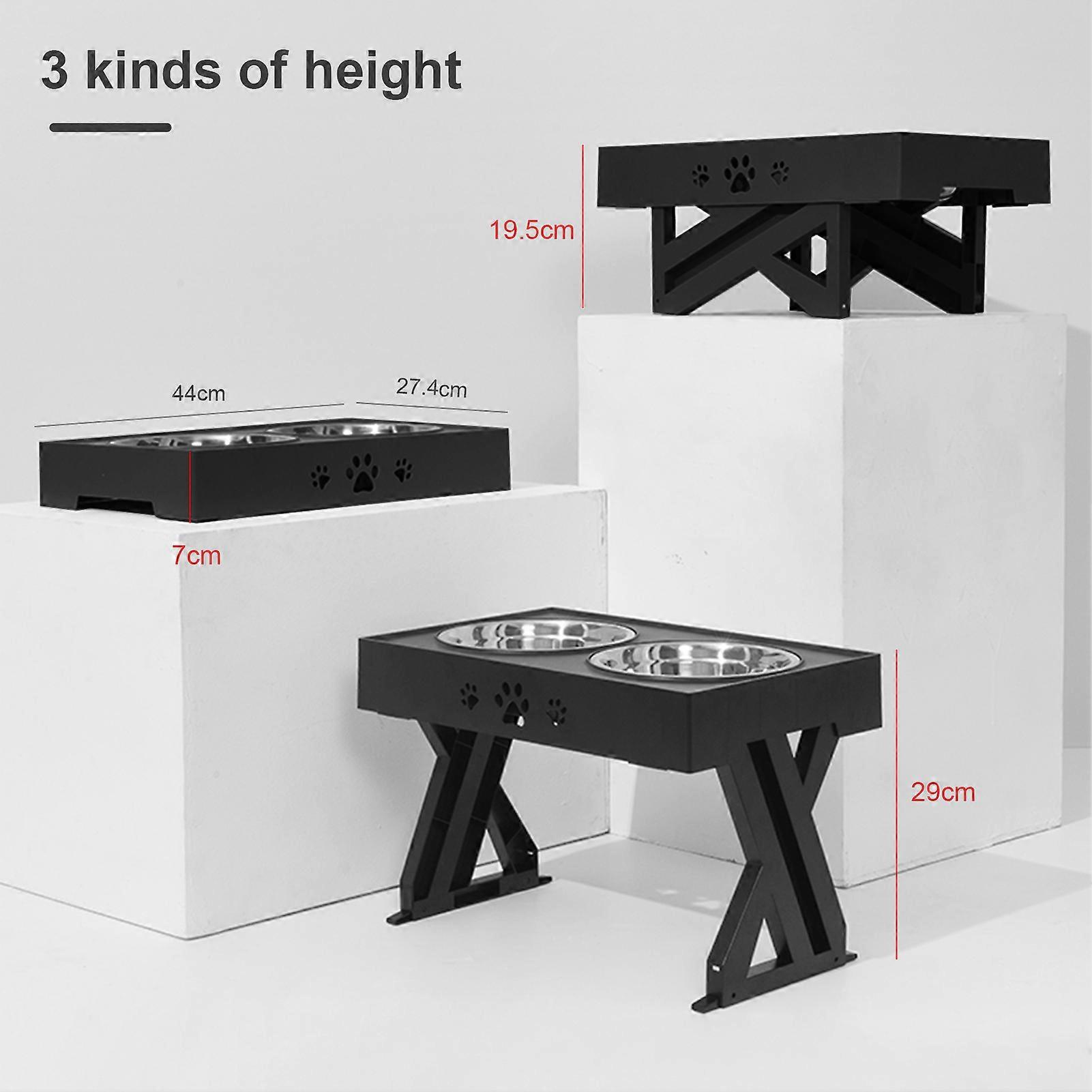 Adjustable Elevated Dog Bowl Table with Double Stainless Steel Bowl Raised Dogs Stand for Cat Pet Antislip Detachable Water Feeder