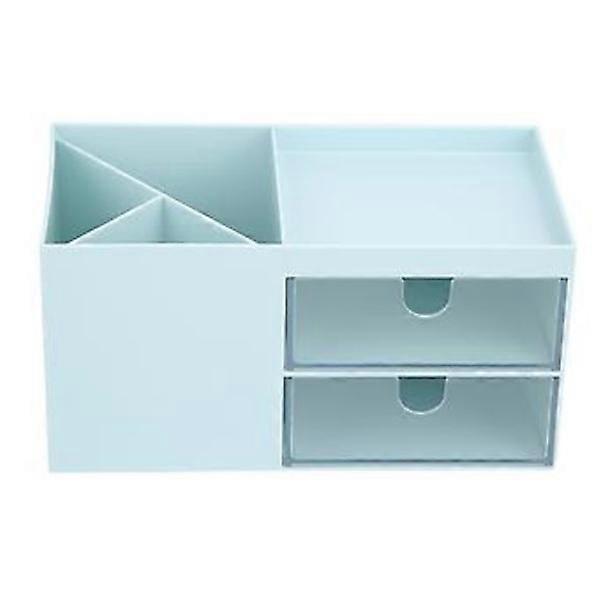 Desk Multifunctional Drawer Jewelry Stationery Storage Box Container Makeup Case Holder Office Home Blue