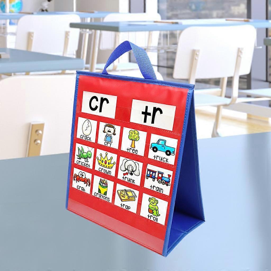 Multipurpose Table Top Pocket Chart Desk Wall Classroom Office Learning Supplies Double Sided Self-Standing or Wall Desk Hanging Flashcard Holder