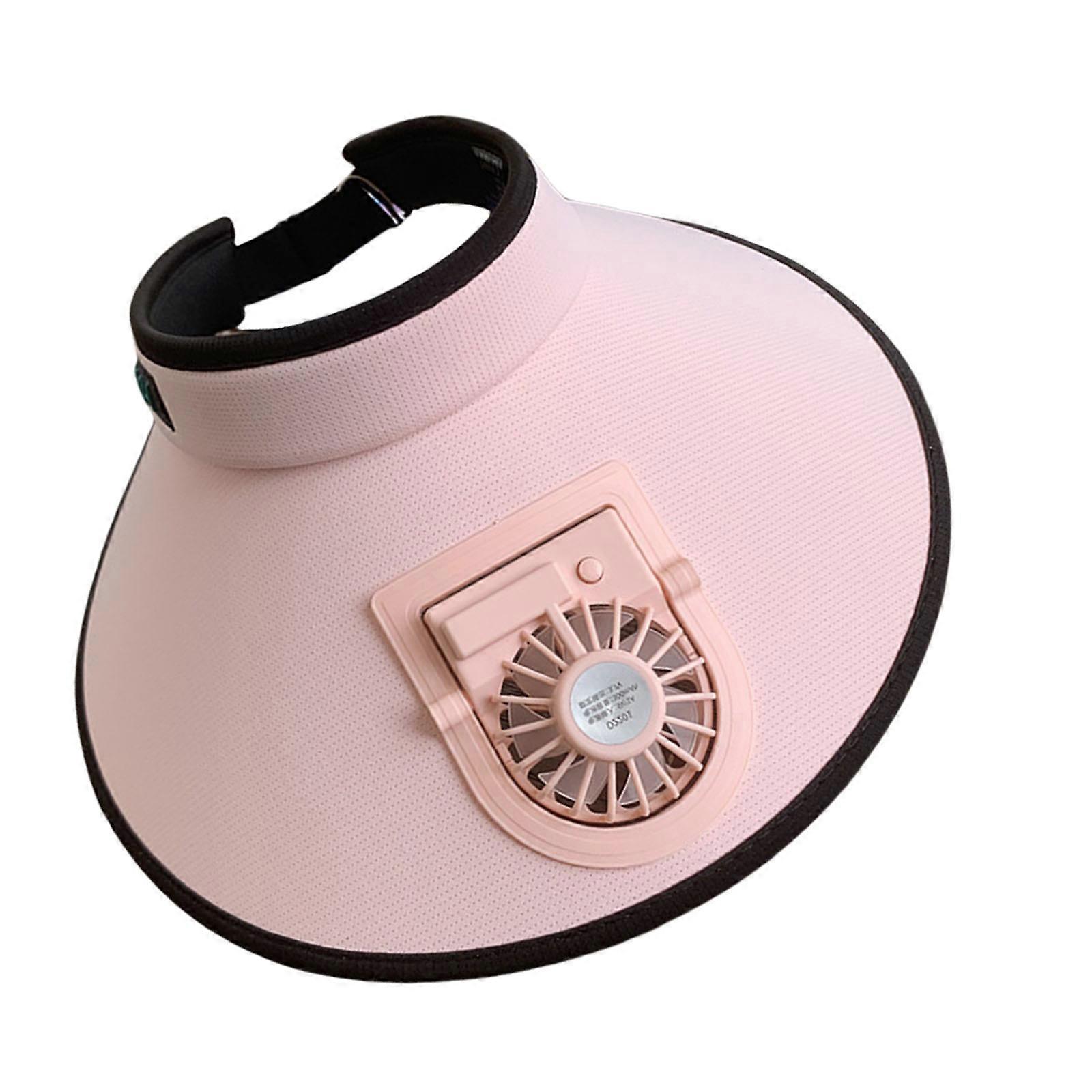 Large Brims Sun Hat USB Charging Cooling Fan Hat Sweat Absorb Open Top Hat Outdoor Headwear for Men Women Sport Gear Pink