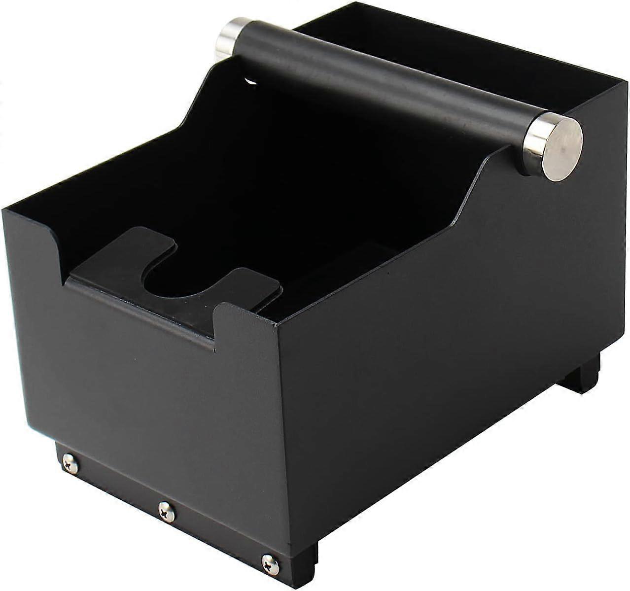 (Black)Espresso Knock Box with Coffee Tamping Station Base, Stainless Steel Coffee Grounds Knock Box Container Bin with Portafilter Stand
