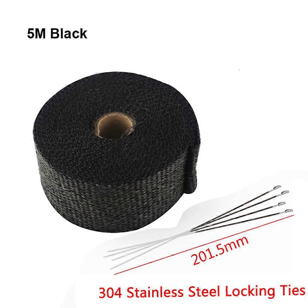 Black 5M 10M 15M Heat Exhaust Thermo Wrap Protective Shield Tan Tape Fire Retardant Insulating Fabric Roll Kit for Motorcycle Car~17298