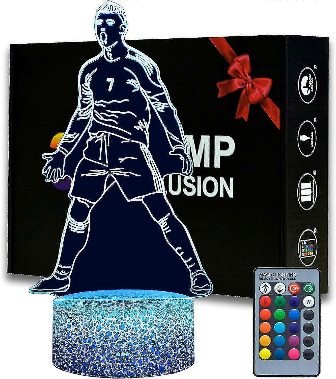 Portugal Football Player Ronaldo #7 Night Light for Boys,16 Color Changing Dimmable with Remote Room Football Decor,Desk Lamp for Football Fans Kids T