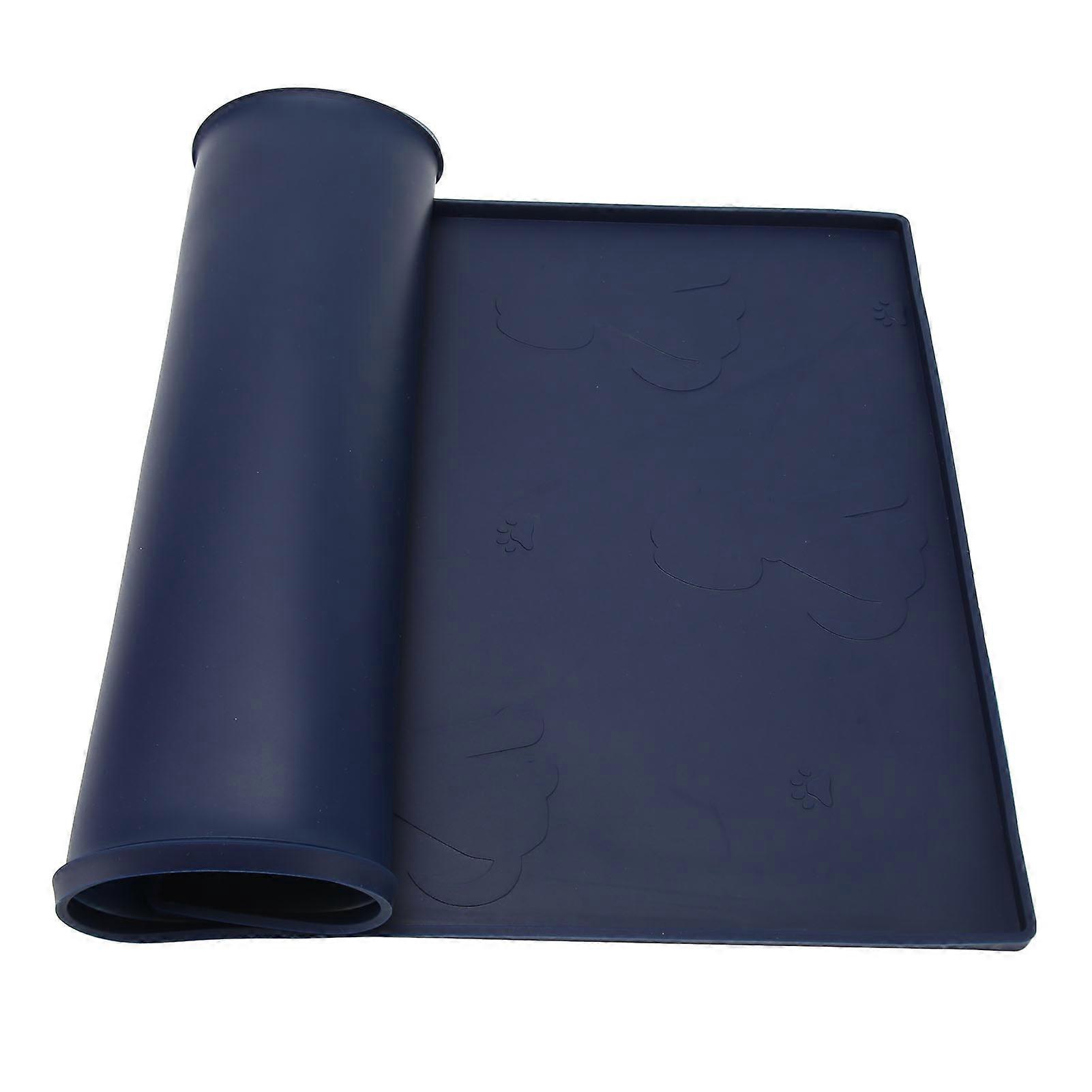 Pet Feeding Mat Puppy Pattern Waterproof Slip Resistance Small Food Grade Silicone Dog Food Mat for Floors Dark Blue