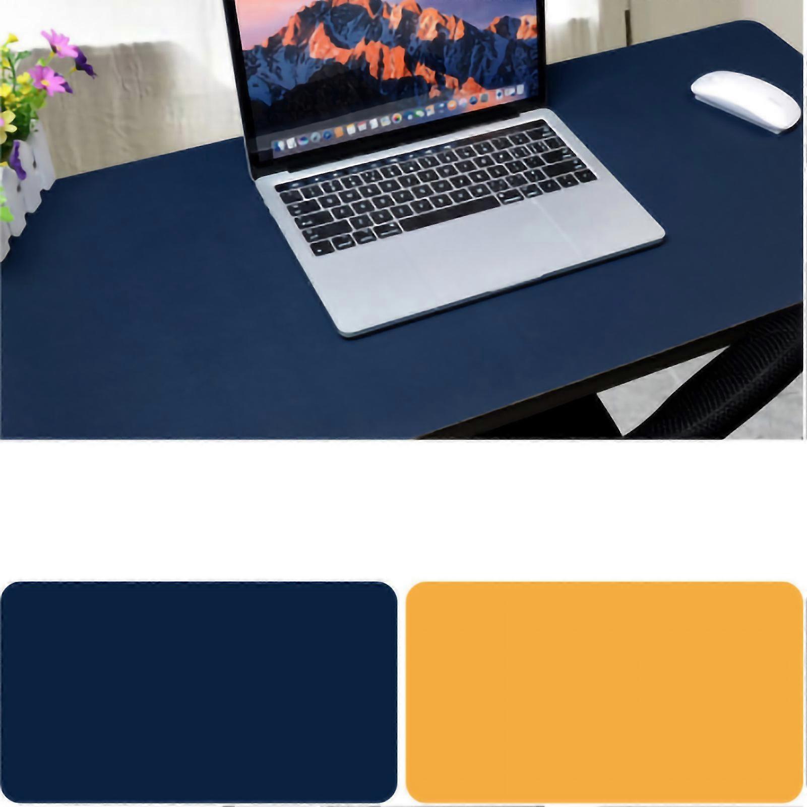 Computer Desk Mat Oversized Ultra Thin 2mm Double Sided Waterproof PU Leather Desk Mat for Office Work Home60x30cm Sapphire Blue Yellow