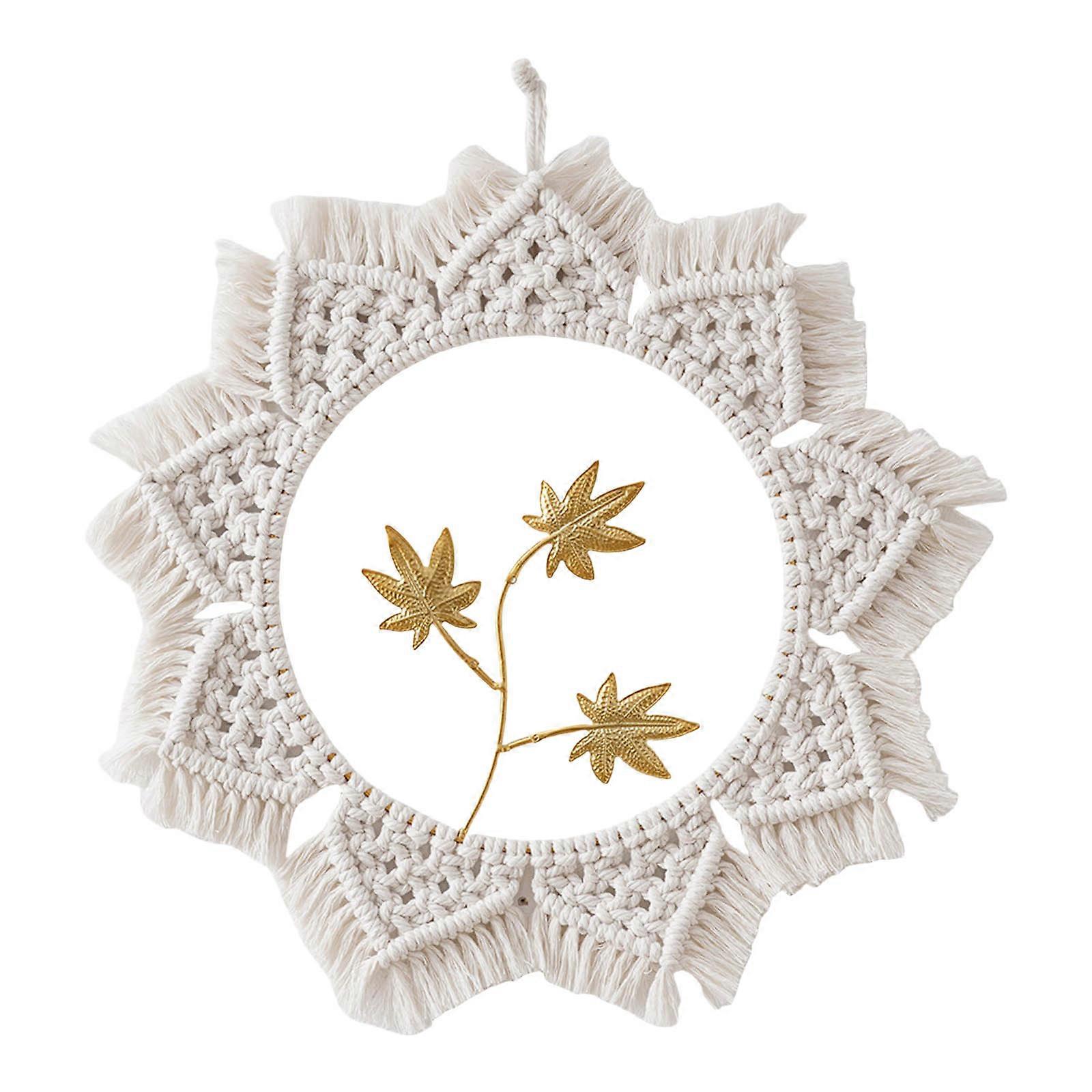 Tapestries Macrames Wall Hanging Cotton Tassels Decors with Devil Eye and Gold Leaf for Living Room Bedroom and Wedding B