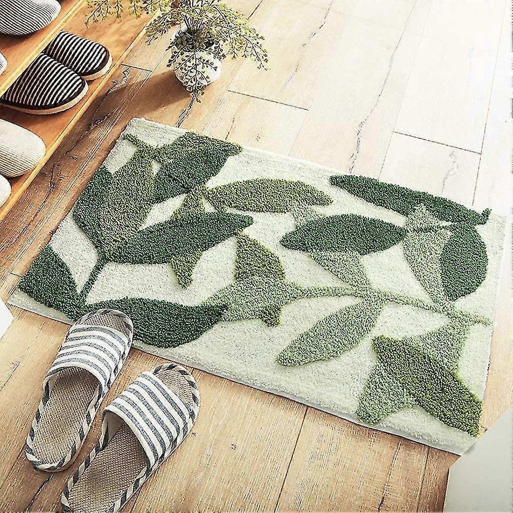unique Extra Soft Microfiber Shag Non-slip Absorbent Bath Mat Machine Washable Bathroom Mat For Bath, Shower And Bathroom, Bedroom, 50x80cm, Leaf Gree
