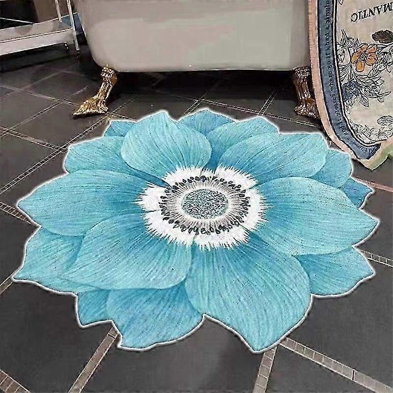 Flower Carpet Bathroom Mat - Absorbent Non-Slip Foot Pad in Bauhinia Blue Lotus Design for Living Room, Bedroom & Cloakroom