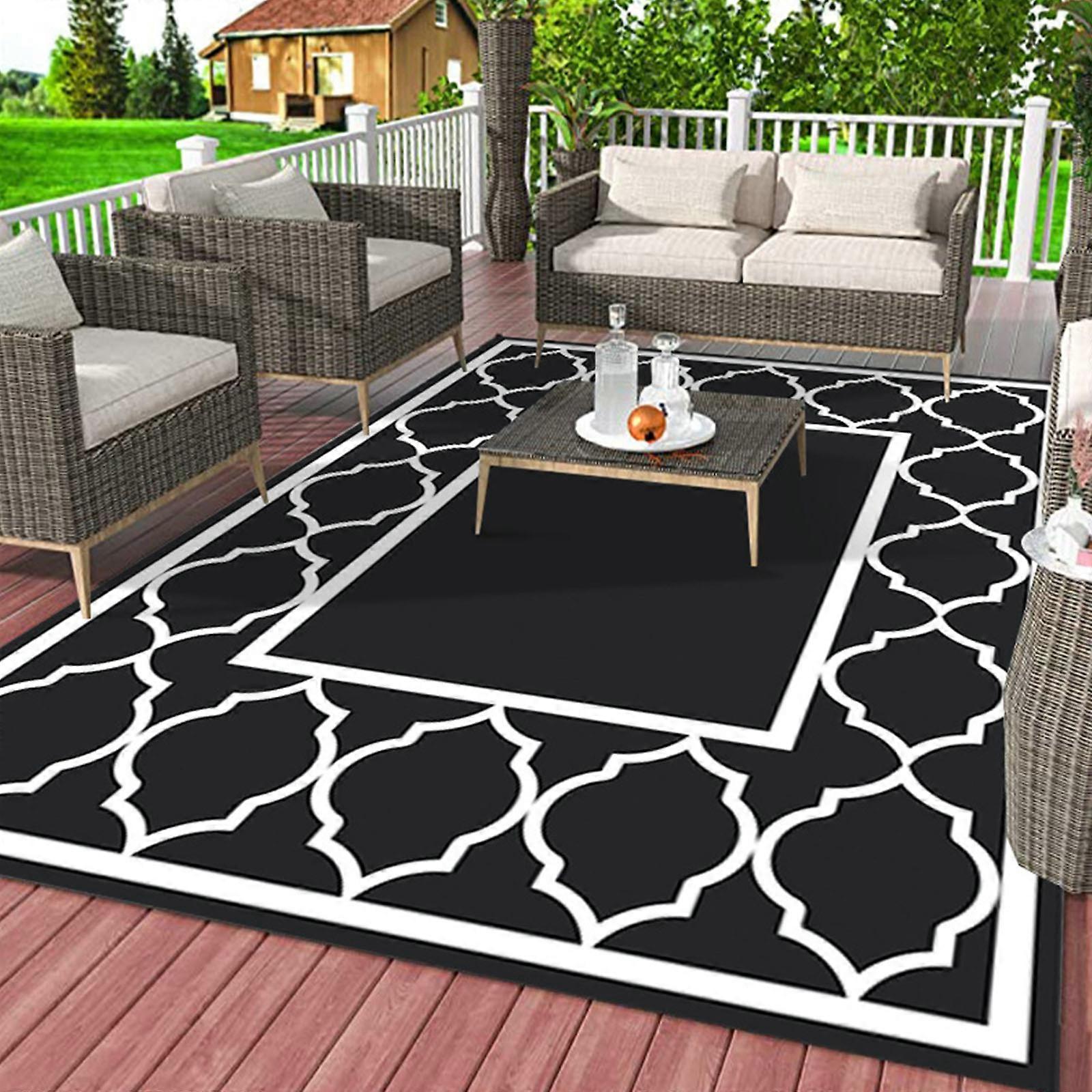Sun Resistant Outdoor Rug Washable Area Rug Ideal for Camping Deck Backyard Garden Balconys Pool Modern Home Decors Rug Dark gray and black 120x160cm