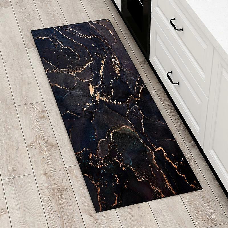 Kitchen Rug Luxury Black Gold Marble Ink Pattern Entrance Door Mat Bedroom Living Room Hallway Anti-slip Long Strip Carpet