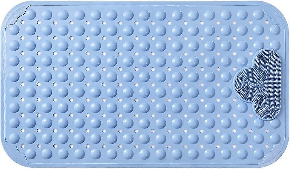 Large Non Slip Shower Mat with Foot Scrubber Brush,Suction Cups Foot MassagerBlue,40x70CM