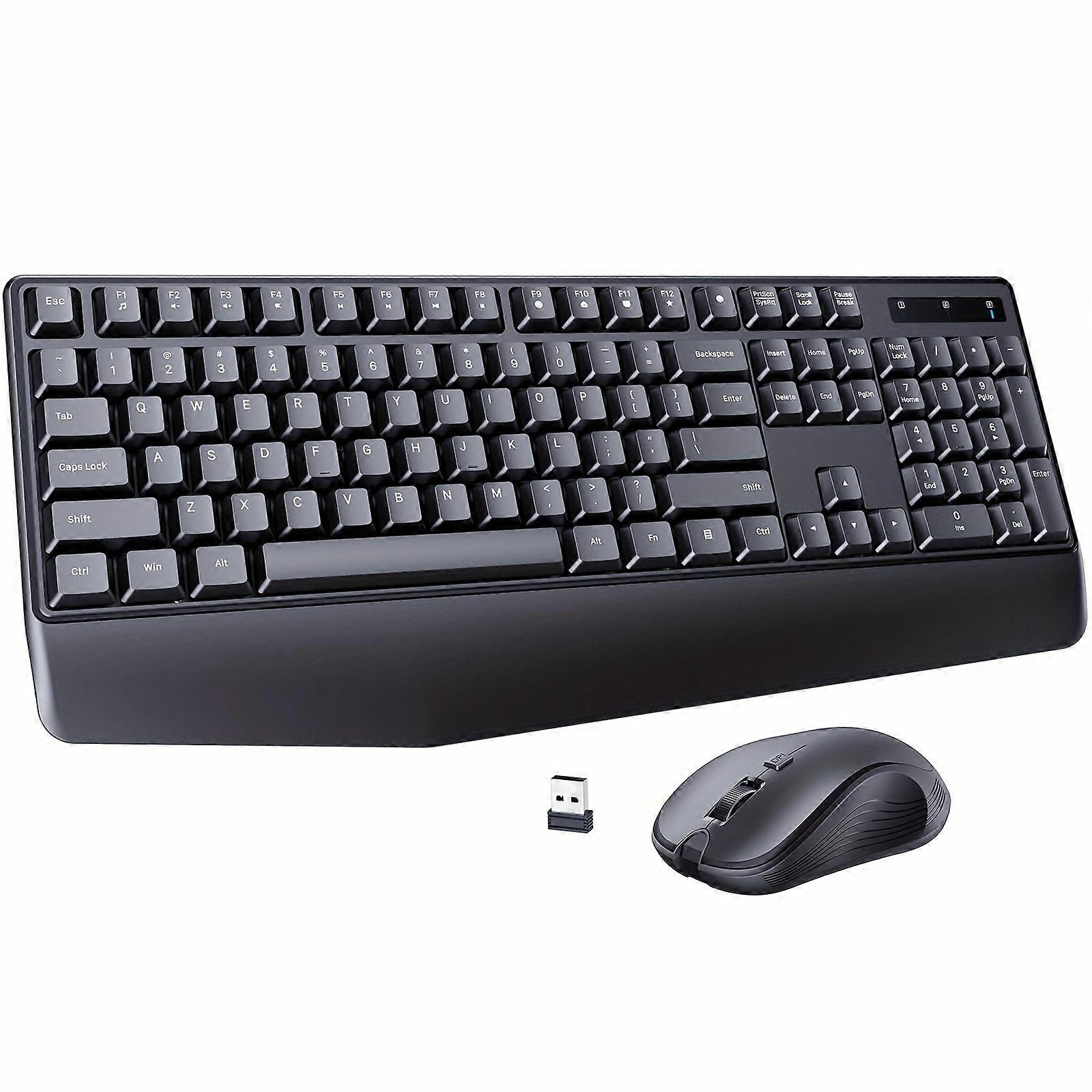 Wireless Keyboard and Mouse Combo, 2.4G Full-Sized Ergonomic Computer Keyboard with Wrist Rest and 3 Level DPI Adjustable Wireless Mouse for Windows/M