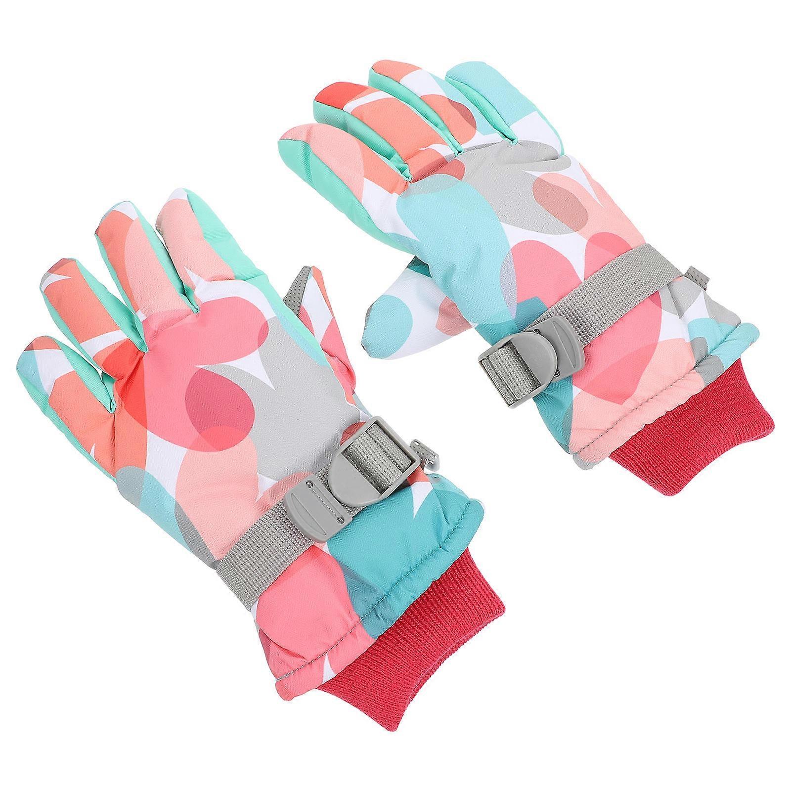 Warmth Retention Waterproof Ski Gloves For Children Daily Activities Snowmen Building 1 Pair Assorted Color