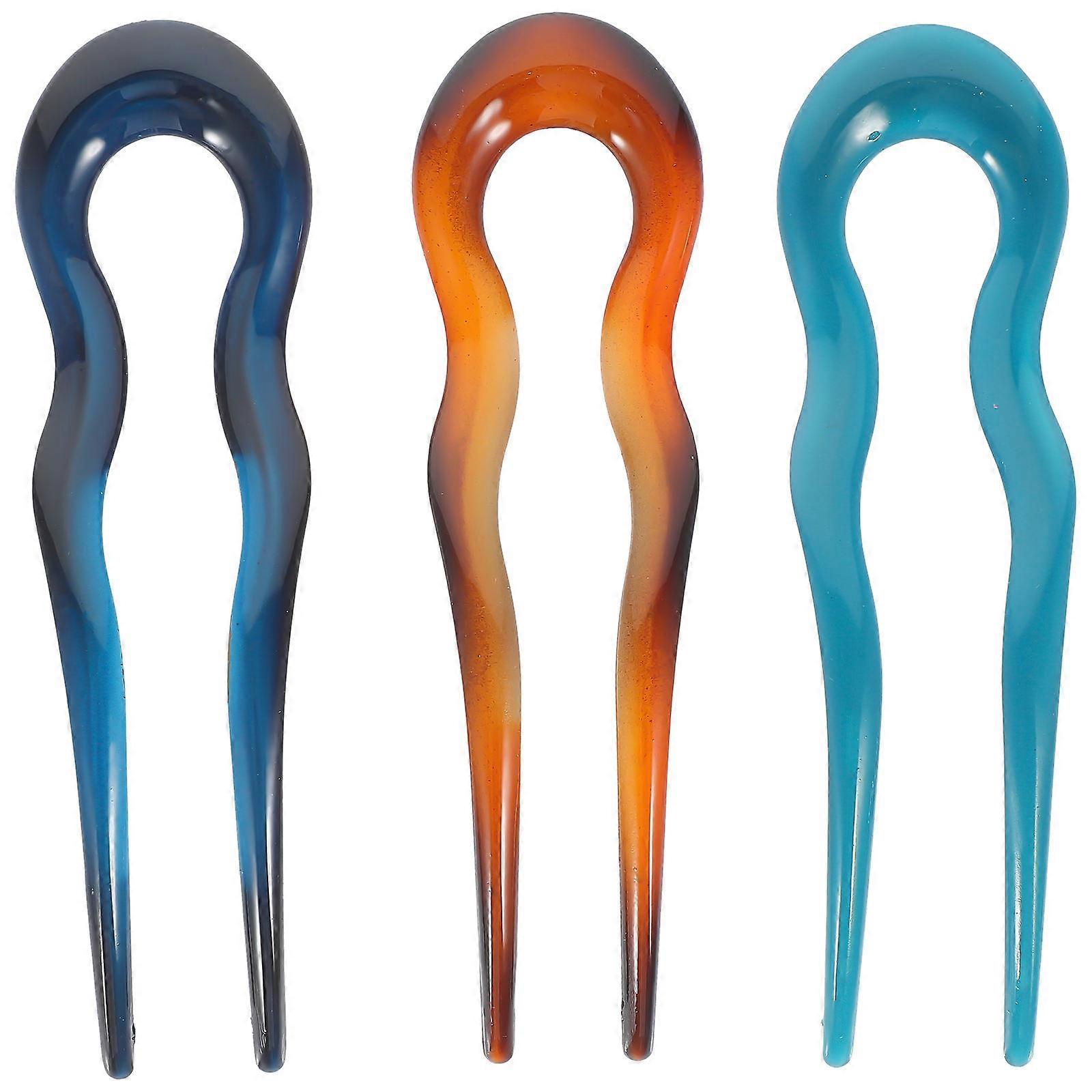 Hair Bun Stick French U Pin U Shaped Hair Clip Stylish Appearance 3Pcs Women Weddings Sky Blue