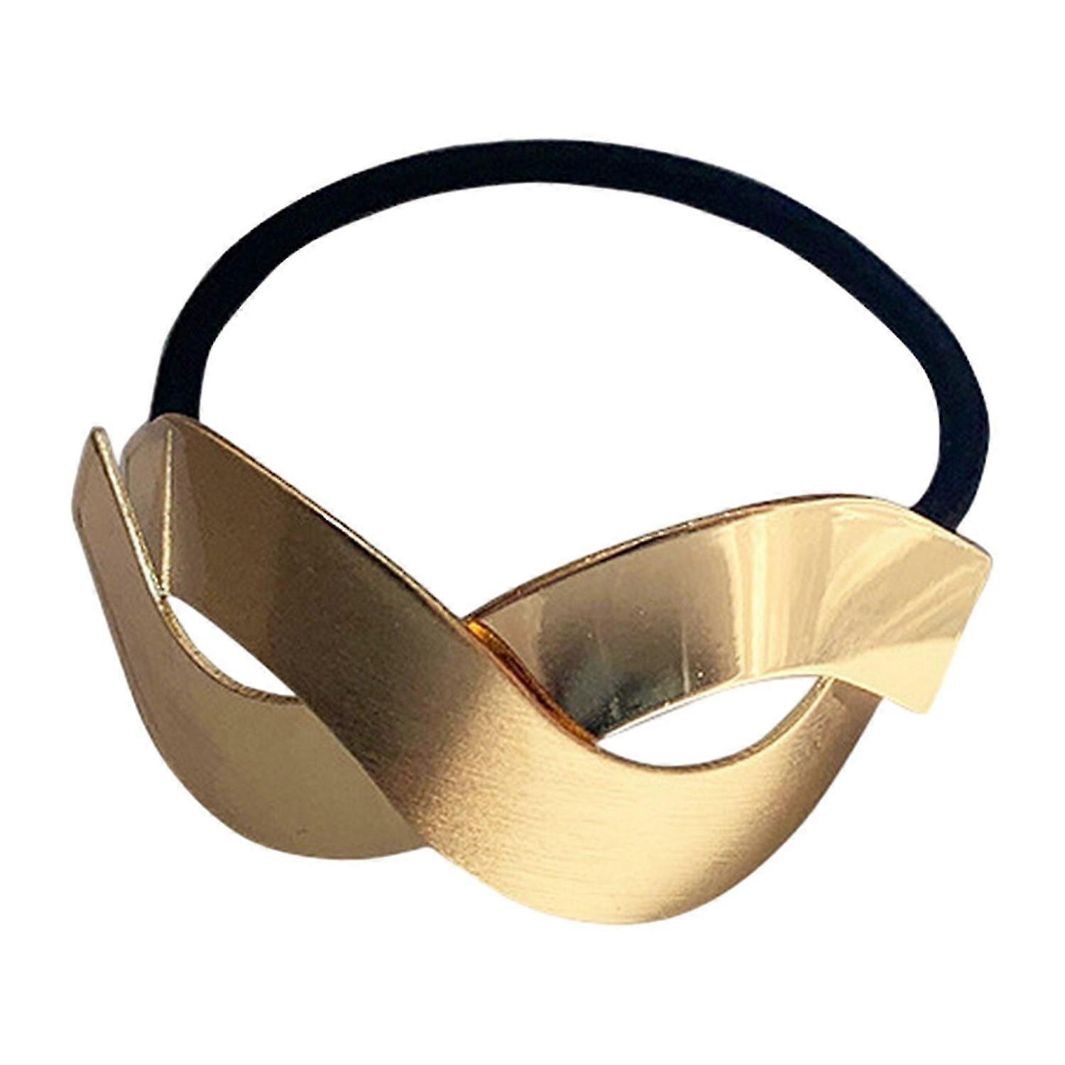 Hair Tie Stylish Metal Circle Elegant Fashionable Ponytail Holder with Metallic Texture for Women