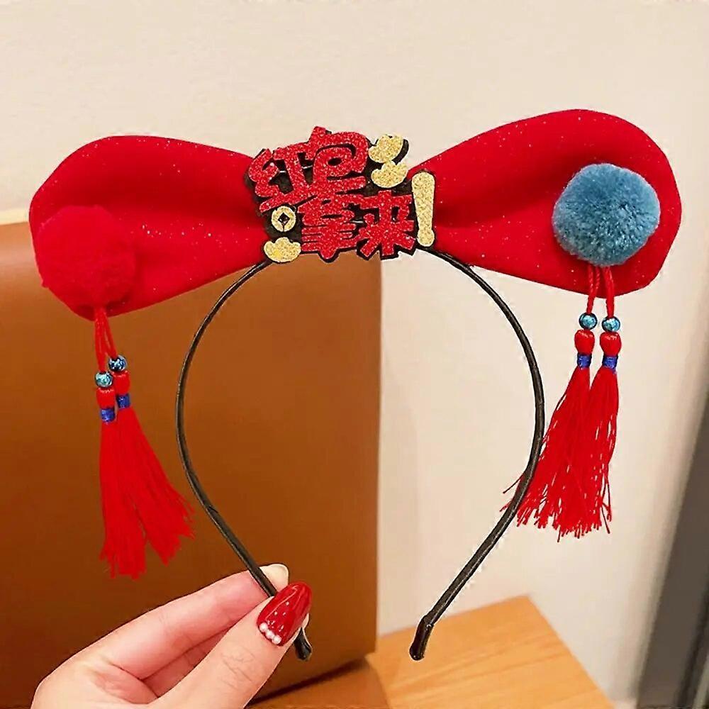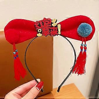 Braid Hair Children Wig Headband Tassel BowKnot Chinese New Year Headwear Girl Hair Accessories Chinese Style Red Bow Hairband