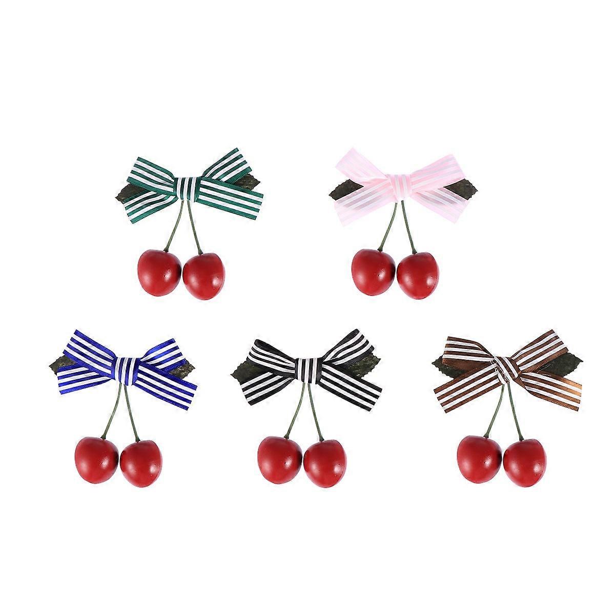Hair Bows Girls Hair Accessories For Party Daily Wear Elegant Wear Cherry Shape Ribbon Bow Clips Blue Stripes 5Pcs