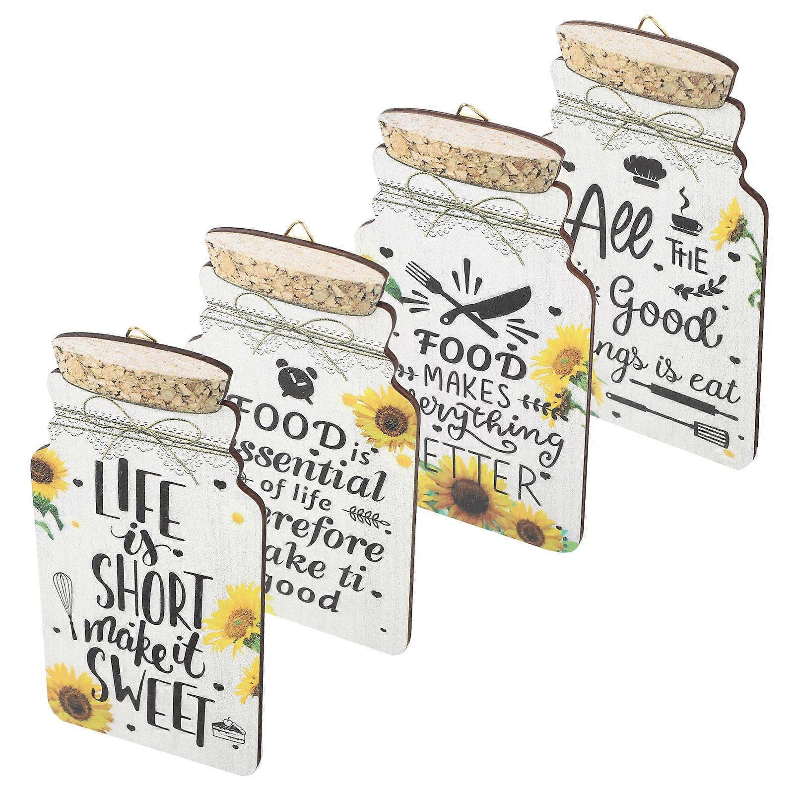 Rustic Farmhouse Sign Kitchen Wall Decor 4Pcs Wood Material Diy Plaque Jar Shape