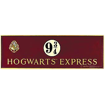 שלט הוגוורטס אקספרס מגזרת הקרטון הרשמית המותקנת על קיר הארי פוטר