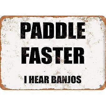 שלט מתכת 12 x 16 - משוט מהר יותר. אני שומע בנג'וס - אמנות עיצוב קיר וינטאג '