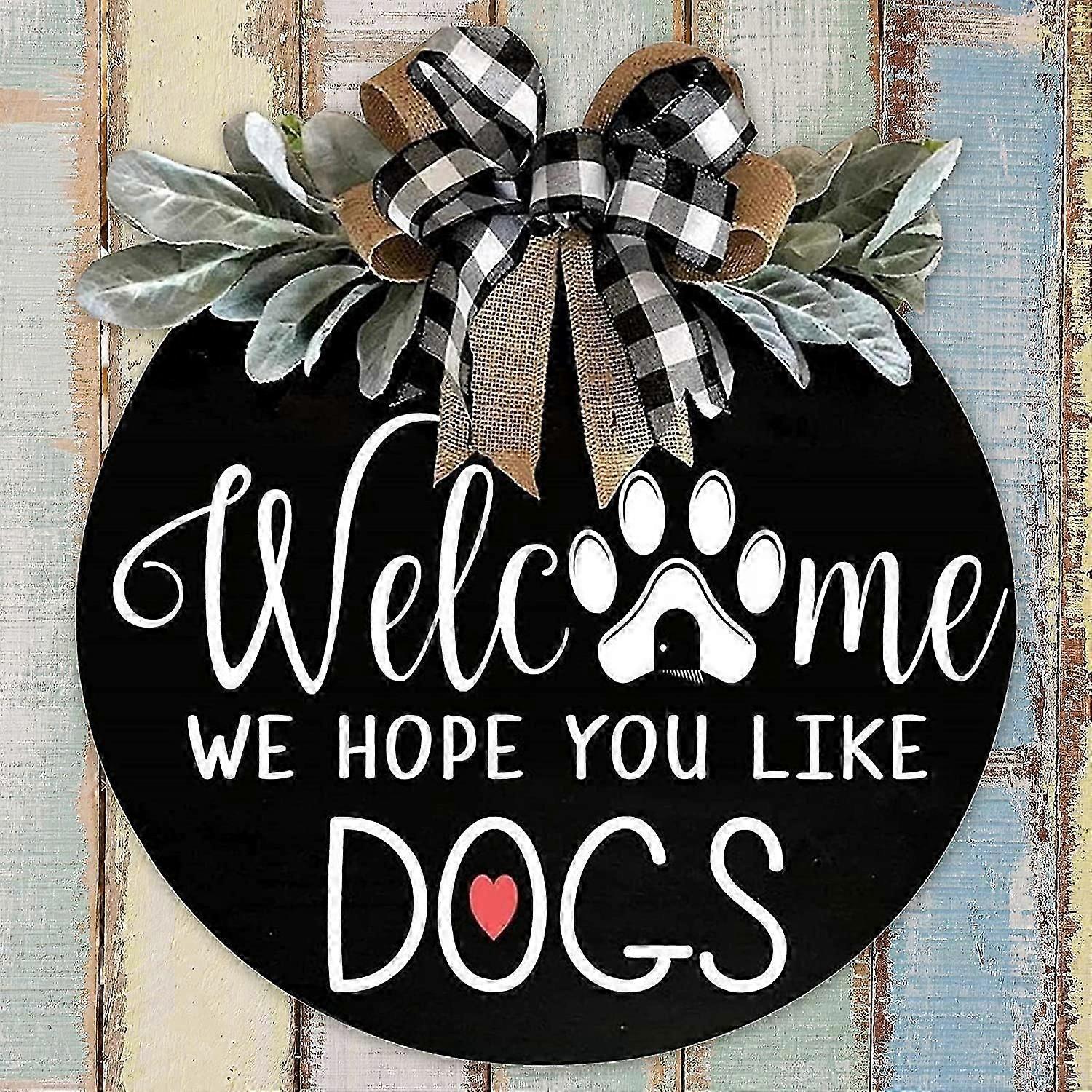 Traditional British Front Door Welcome Sign with Festive Garland and Rustic Wooden Hanger