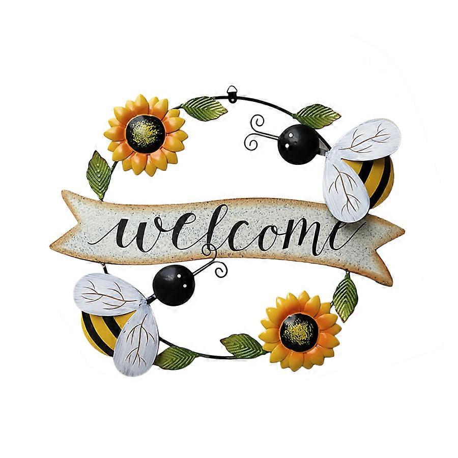Charming Rustic Sunflower & Bee Welcome Sign - Metal - 30x39cm