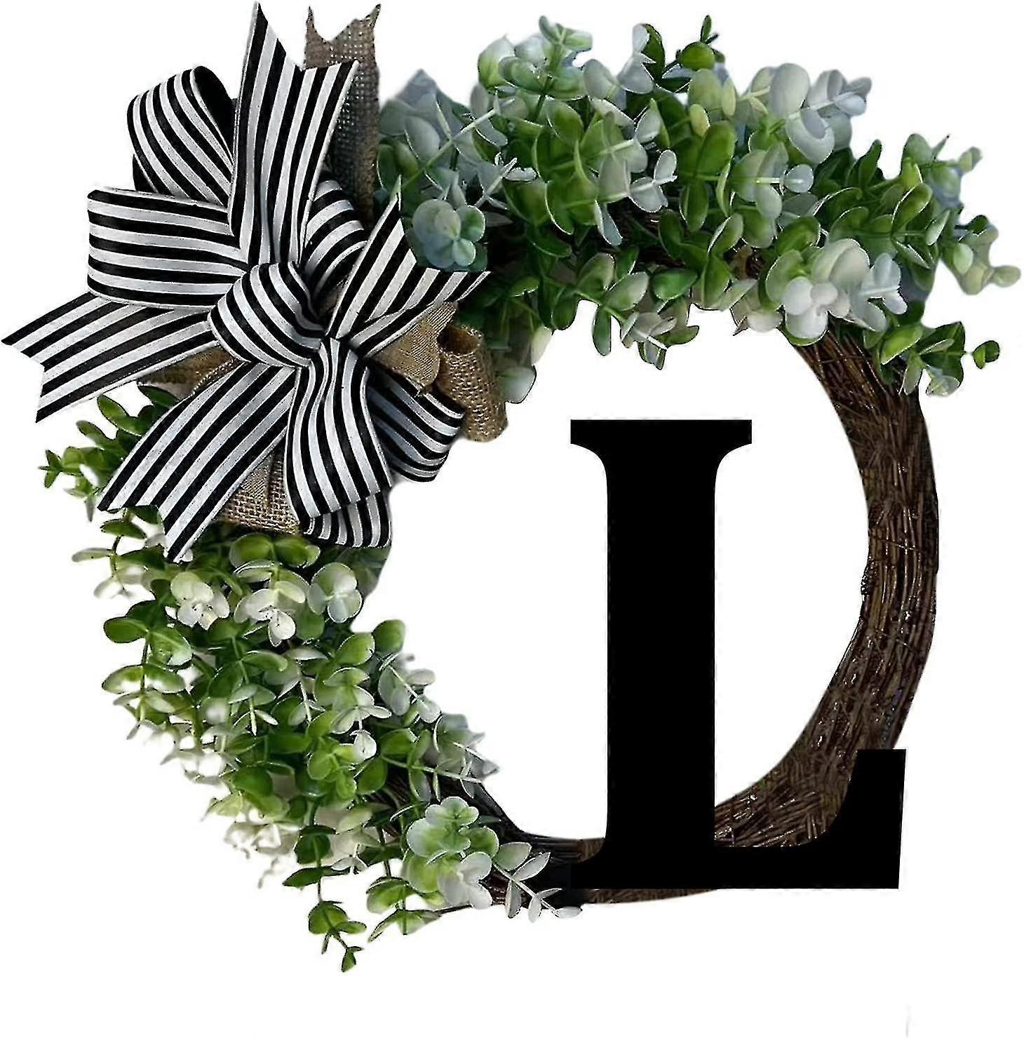 Unique Last Name Year Round Front Door Wreath With Bow, Welcome Sign Garland Creative 26 Letter Farmhouse Wreath