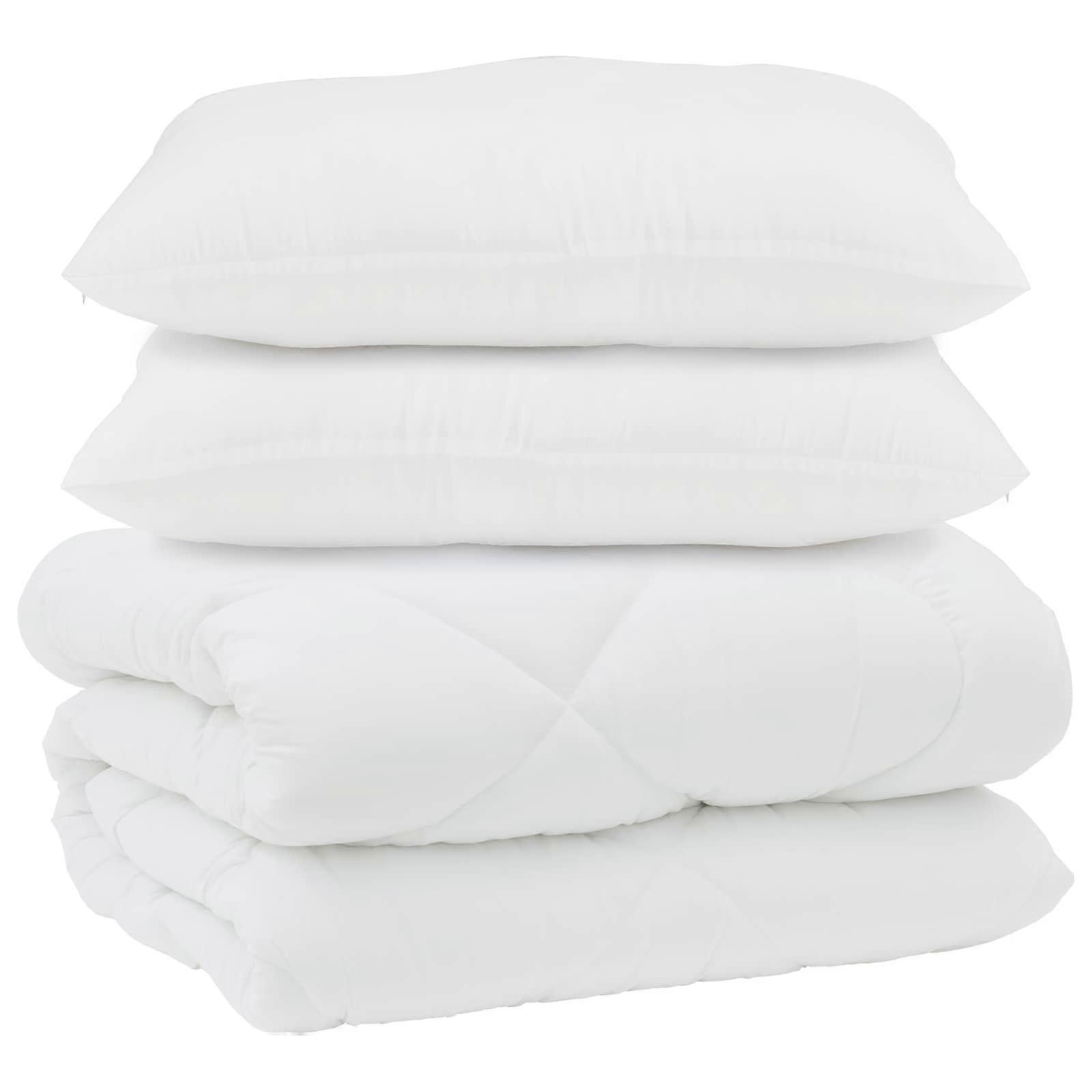 Decke mit Kissen 3 pcs Weiß Mikrofaser und Daunenfedern