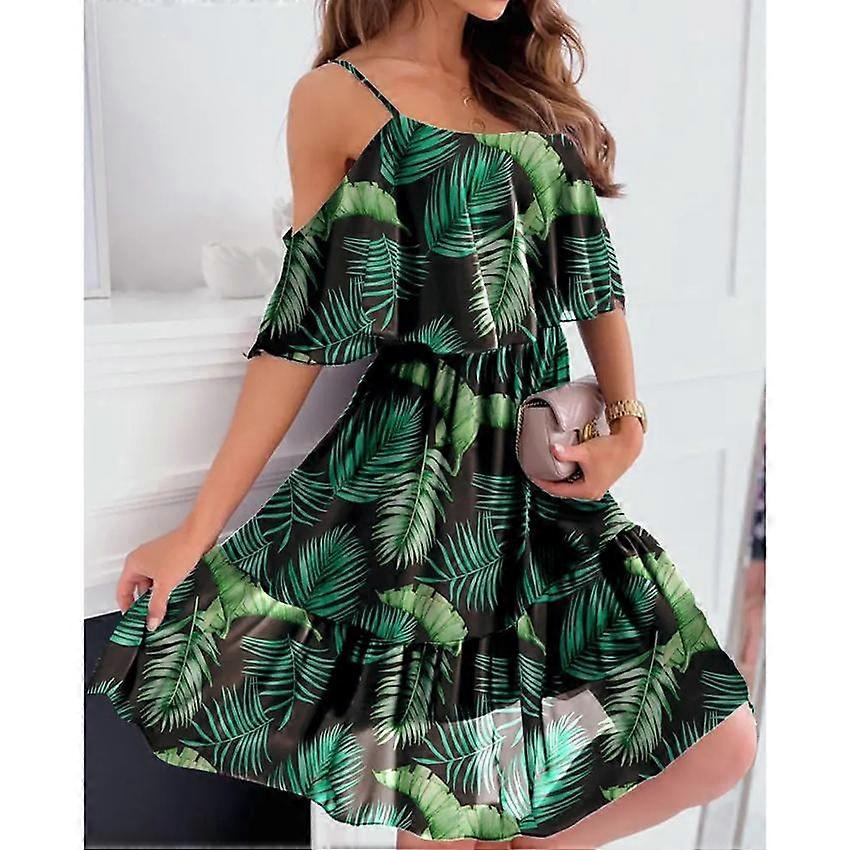 Dress Woman Summer Print Floral Spaghetti Strap Fashion Off Shoulder Beach Holiday Sundress Sweet A-Line Mesh Fabric