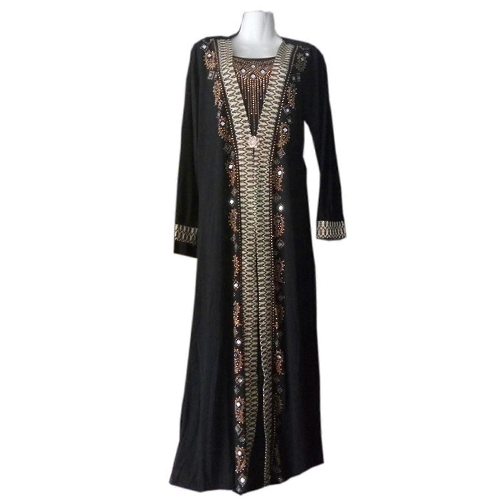 Muslim Dress Full Cover Dress Long Sleeves Women Robe African Lady Stripes Dresses Middle East Clothing for Four Seasons C XL