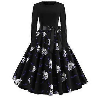 Halloween Dresses Womens Long Sleeve Skeleton Pumpkin Printed Cosplay Party Costume
