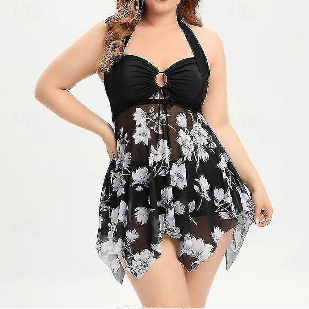 Plus Size Floral Print Swim Dress for Women - Beach Holiday Bathing Suit