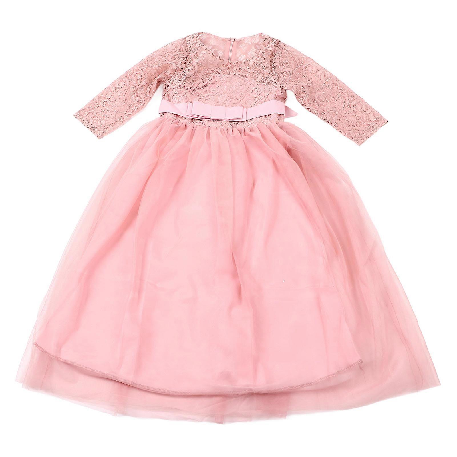 Princess Girl Wedding Dress 3/4 Sleeve Lace Flower Gown Princess Puffy Dress for Children