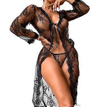 Lady Nightdress Open Front Lace Up Two Piece Transparent Floral Lace Sexy