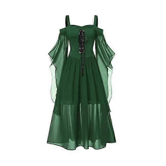 Halloween Maxi Dress Women Renaissance Vintage Off Shoulder Chiffon Long Dress Square Neck A-line Silhouette Strappy Costume for Festive Occasions