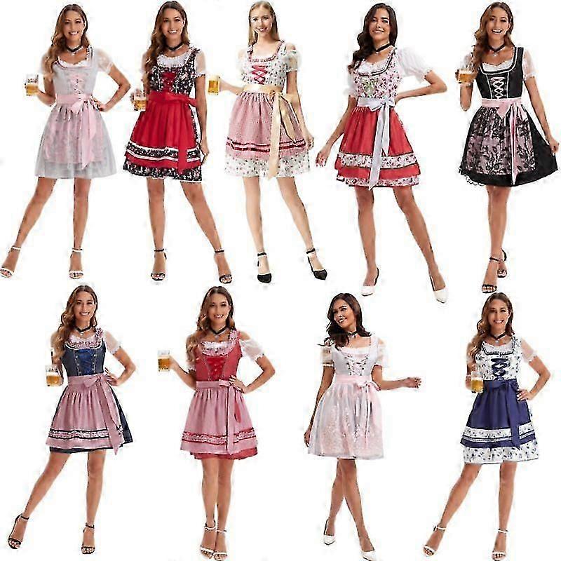 Women's Beer Festival Dress Traditional Bavarian Beer Girl with Lace Apron Short Sleeve Retro German Dress, Suitable for Carnival and Festival-lh1