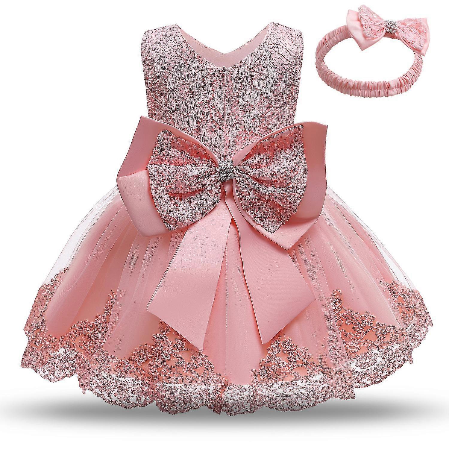 Baby Girls Lace Embroidery Dress With Headwea