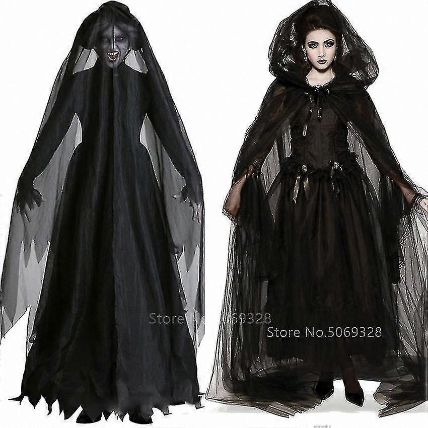 Spooky Halloween Costume Dress with Hooded Cape for Women